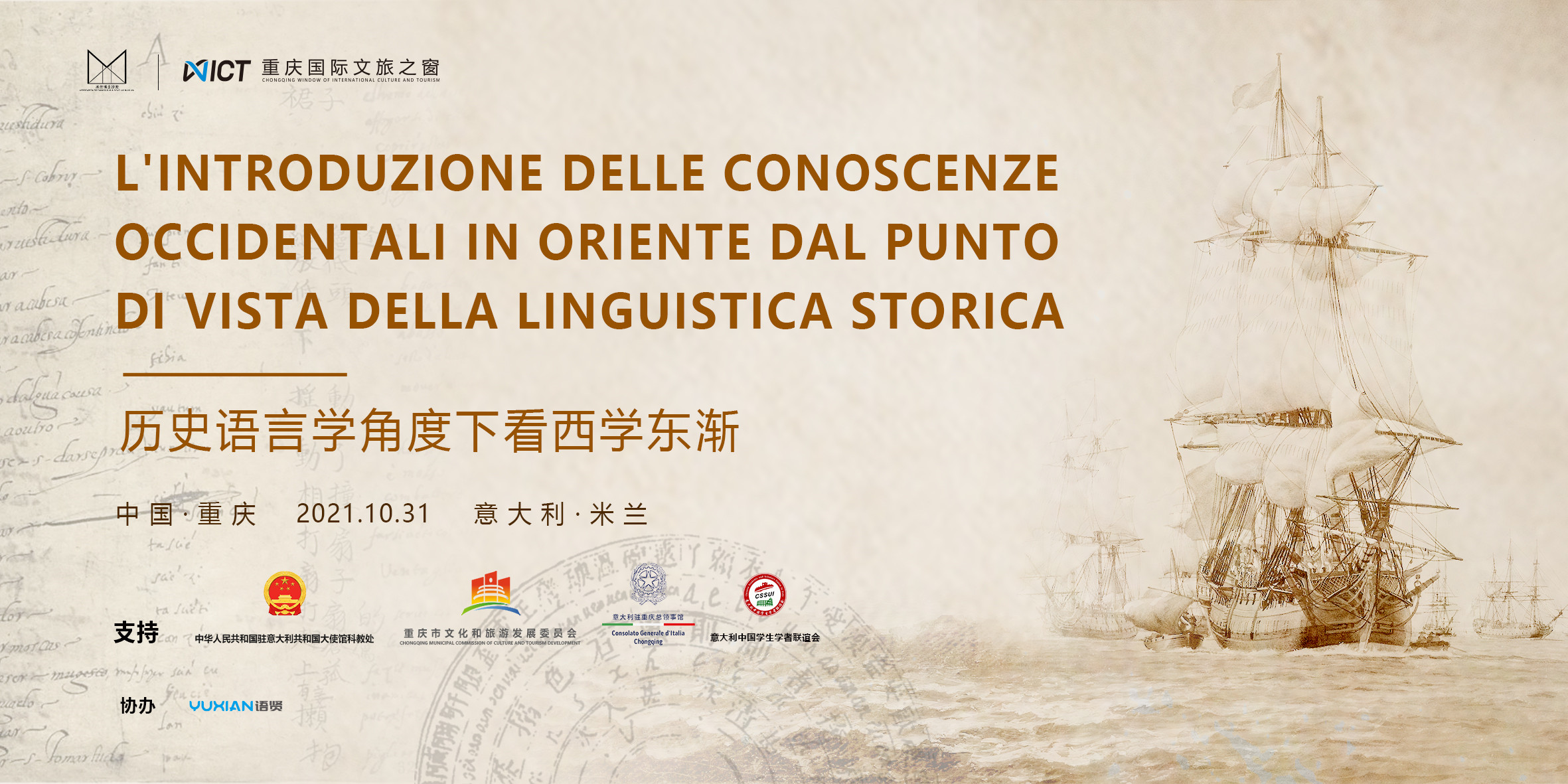 在中國駐意大利大使館科教處、市文化旅游委的支持下,重慶國際文旅之窗與米蘭博士沙龍協會于10月31日下午聯合舉辦“歷史語言學角度下看西學東漸”學術交流沙龍。中國駐意大利大使館科教處、意大利駐重慶總領事館代表分別線上致辭。